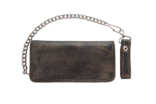 Dream Apparel Motorcycle Bikers Trucker Real Distressed Leather Wallet W/Chain Bifold Wallet