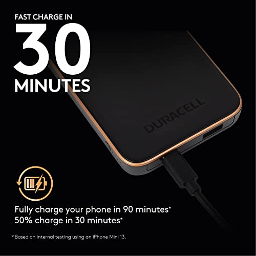 DURACELL Charge 10 | 10,000mAh Mobile Powerbank | Compatible with iPhone, iPad, Samsung, Android, and More | TSA Carry-on Compliant | USB-C, USB-A | Recharges Devices Up to 3X