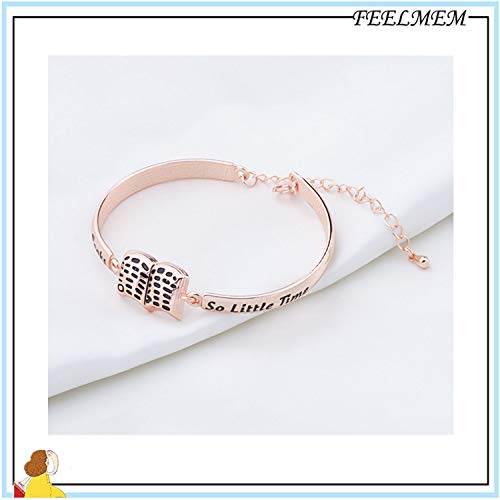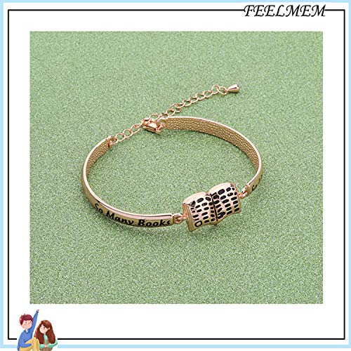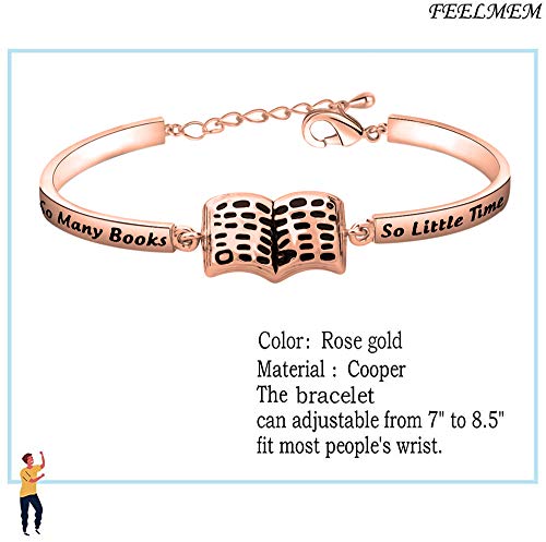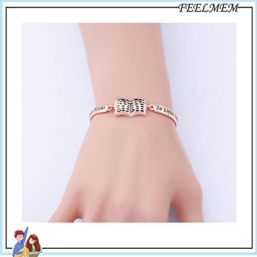 EELMEM Book Lover Gifts So Many Books So Little Time Book Charm Bracelet Bookworm Jewelry Reader Gift Librarian Gift (Rose gold)