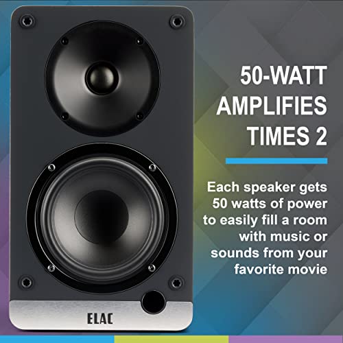 50-WATT AMPLIFIER TIMES 2: Each book shelf speaker gets a solid 50 watts of power that’s enough to easily fill a room with music or sounds from your favorite movie