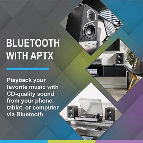 BLUETOOTH WITH APTX: Playback your favorite music from your phone, tablet, or computer via Bluetooth. Our Bluetooth studio speakers feature aptX technology that delivers CD-quality sound