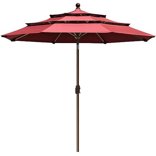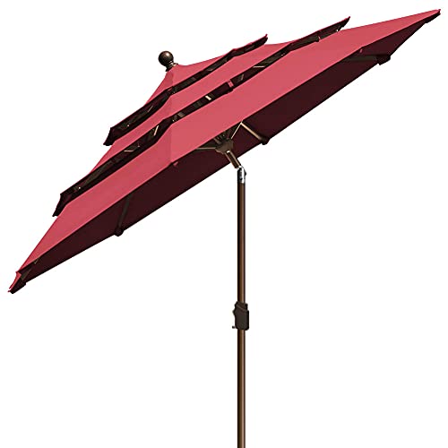 EliteShade USA 10-Year-Non-Fading Sunumbrella 9Ft 3 Tiers Market Umbrella Patio Umbrella Outdoor Table Umbrella with Ventilation,Burgundy