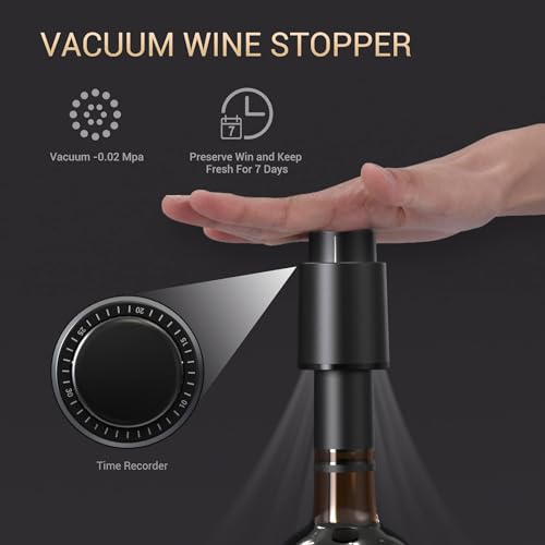 Elktry Electric Wine Bottle Opener, Automatic Electric Corkscrew Wine Opener Battery Operated with Foil Cutter and Wine Pourer and Vacuum Stoppers for Wine Lovers Gift- Black