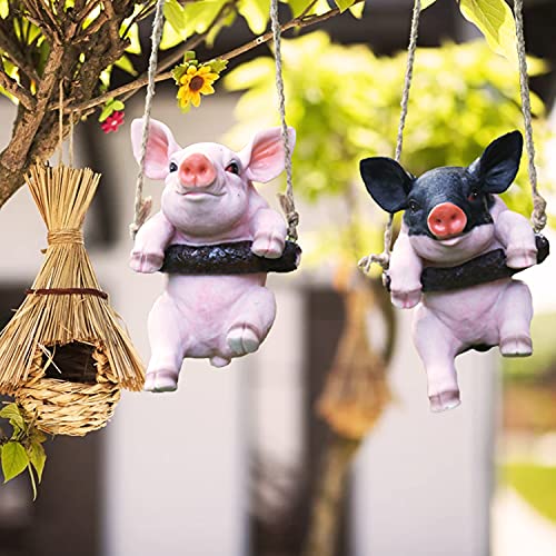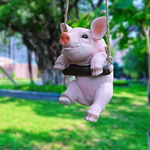 EXQUAILTY Pig Statues Outdoor,Hanging Pig Home and Gardening Decoration,Large Pig Garden Figurines,Pig Decor Outside,Charmingly Naive Pig Statues Home Decoration (PK)