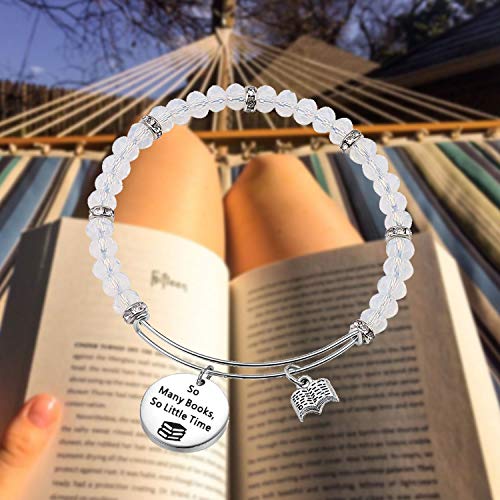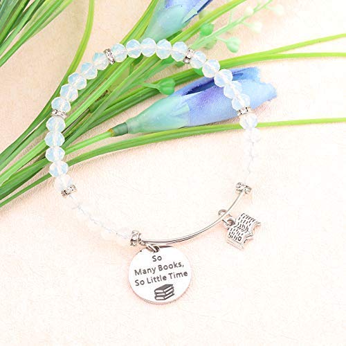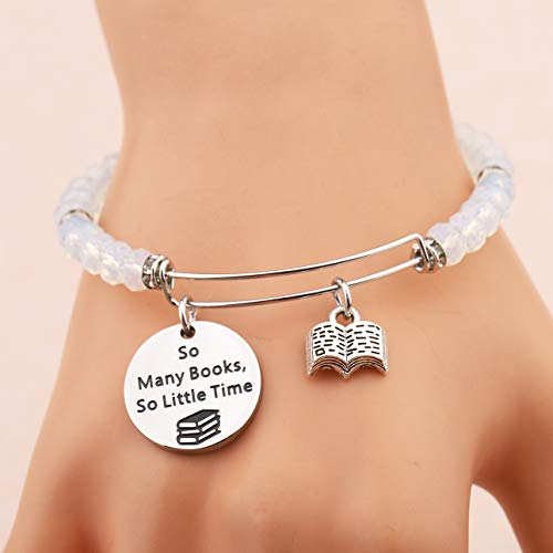 FEELMEM Book Lover Gifts Love Books Bracelet So Many Books So Little Time Reading Bangle Literary Jewelry Writers Author Student Librarian Gift (BC-02)