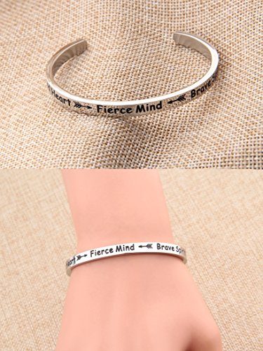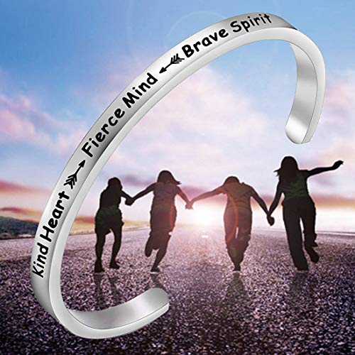 FEELMEM Inspirational Bracelet Kind Heart Fierce Mind Brave Spirit Cuff Bangle Bracelet for Best Friend Encouragement Gift