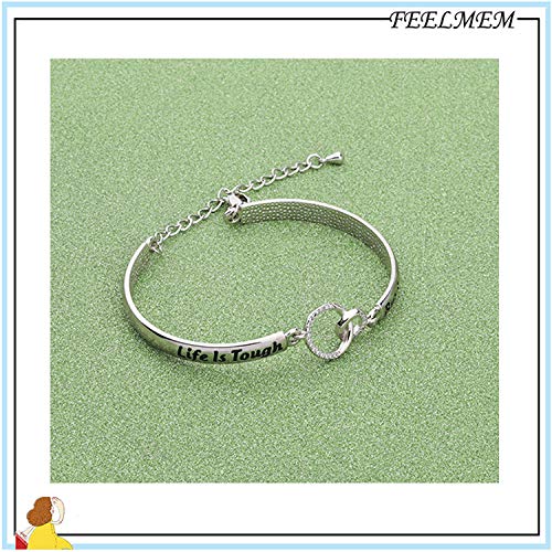 FEELMEM Life Is Tough But So Am I Bracelet Depression Suicide Mental Health Awareness Inspirational Jewelry Recovery Gift Keep Going Gift (Life Is Tough-silver)