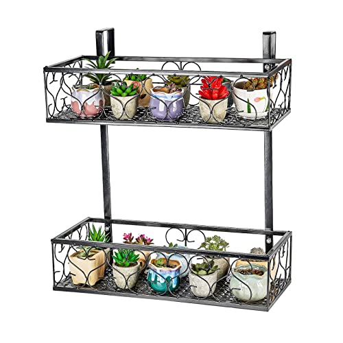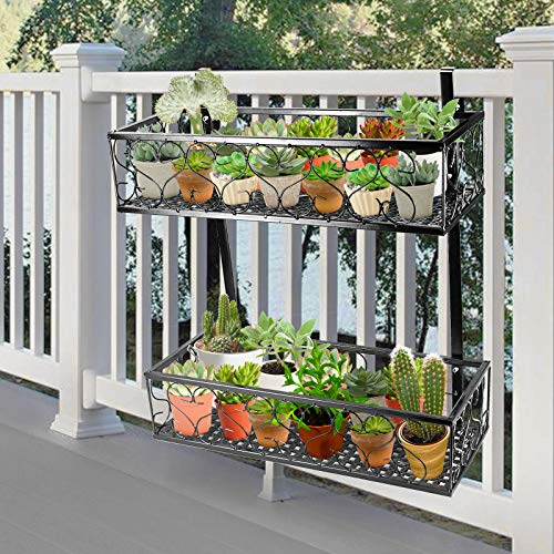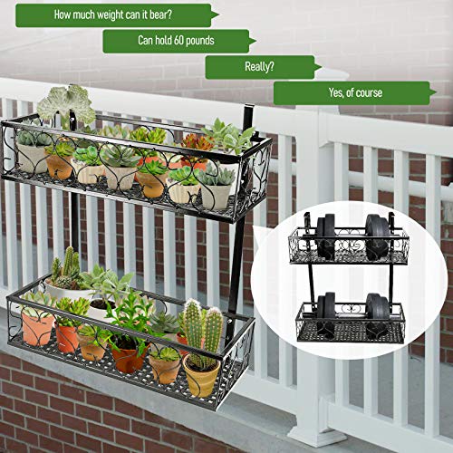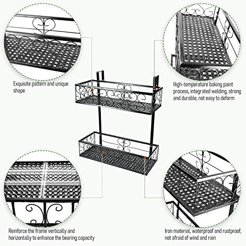 Fitlyiee Balcony Flower Pot Holder 2-Tier Hanging Flower Rack Balcony Railing Shelf Fit Fence Patio Deck (Style 4)