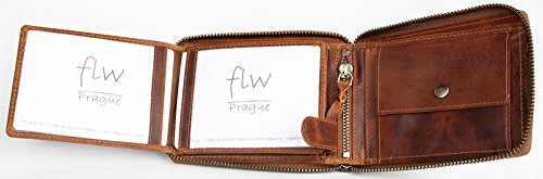 FLW Strong Italian Style Finished Genuine Leather Wallet without Any Logos with Metal Zipper Around
