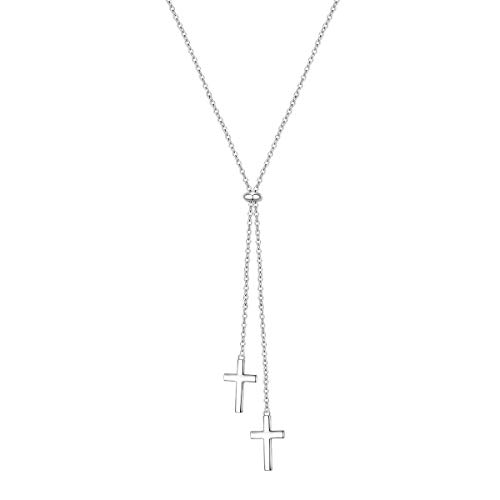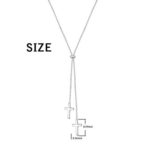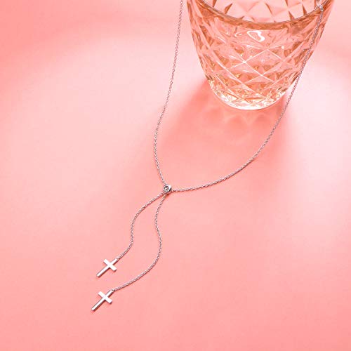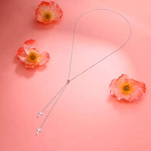 FLYOW Long Chain Dainty Necklace Simple Style 925 Sterling Silver Heart Pendant Adjustable Y Shaped Necklace Jewelry (Cross)