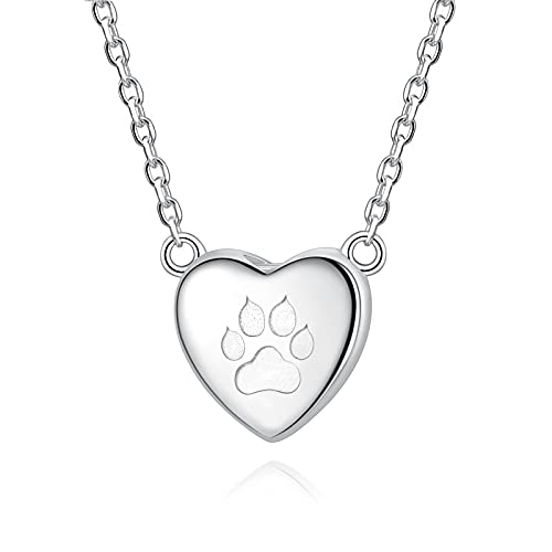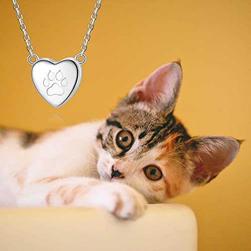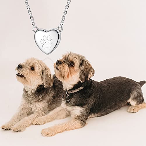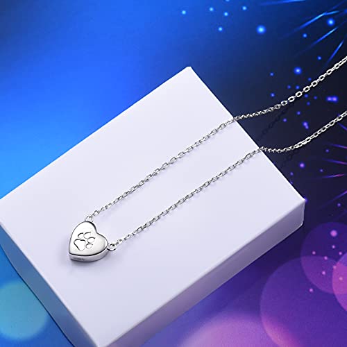 Fookduoduo 925 Sterling Silver Paw Print Urn Necklaces for Ashes – Cremation Heart Urns Keepsake Necklace Jewelry for Pet Lovers