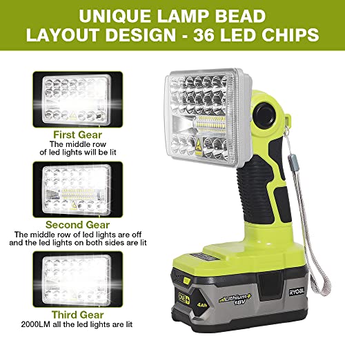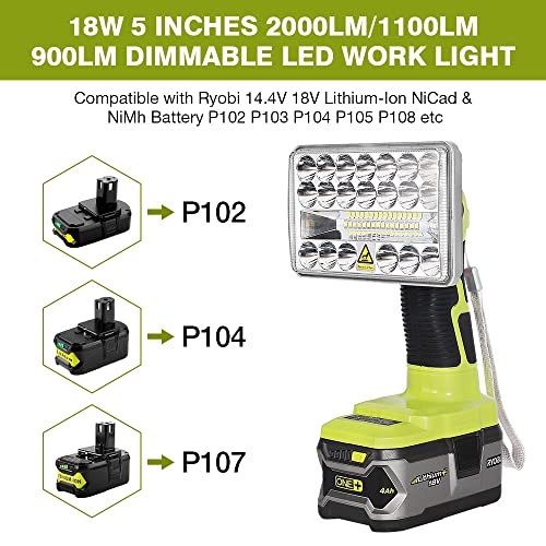 for Ryobi Cordless LED Work Light, WaxPar 18W 900LM-2000LM Jobsite Light, Compatible with Ryobi 18V 14.4V ONE+ Lithium NiCd NiMh Battery P108 with 3 Modes Setting & 110 Degree Pivoting