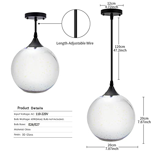 FRIDEKO HOME Industrial Modern 3D Colourfull Glass Pendant Light 7.9 inches Firework Globe Ball Style Hanging Lamp Creative Lighting Fixture for Island Kitchen Dining Room use E26 Bulb