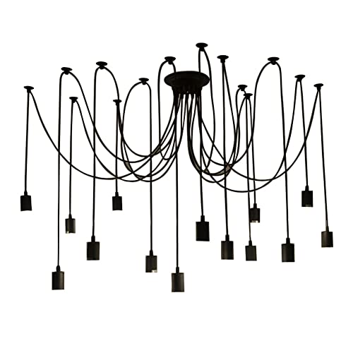 Fuloon Vintage Edison Multiple Ajustable DIY Ceiling Spider Lamp Light Pendant Lighting Chandelier Modern Chic Industrial Dining with Romote Control (14 Head Cable 200cm/78.7inch Each)