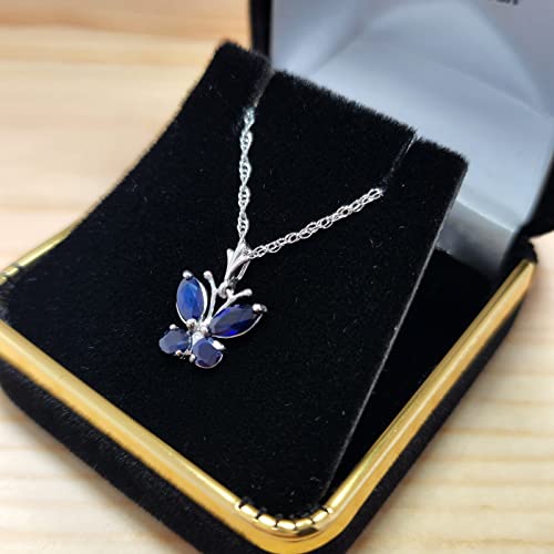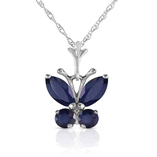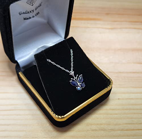 Galaxy Gold GG 14K White Gold Butterfly Natural Blue Sapphire Drop Pendant Necklace