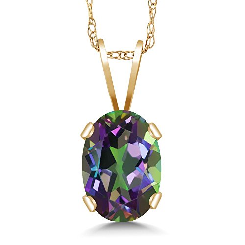 Gem Stone King 14K Yellow Gold Green Mystic Topaz Pendant Necklace For Women (0.95 Ct Oval 7X5MM, with 18 Inch Chain)