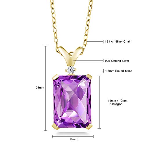 Gem Stone King 18K Yellow Gold Plated Silver Purple Amethyst and White Diamond Pendant Necklace For Women (7.22 Cttw, Octagon Checkerboard, Gemstone Birthstone, with 18 Inch Chain)
