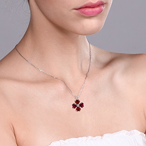 Gem Stone King 925 Sterling Silver Red Garnet and Red Created Ruby 4 Heart Shape Gemstone January Birthstone Pendant Necklace For Women (3.72 Cttw, 6MM Heart, with 18 Inch Silver Chain)