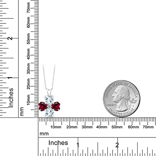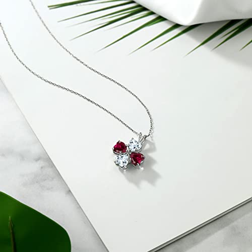 Gem Stone King 925 Sterling Silver Sky Blue Aquamarine and Red Created Ruby 4 Heart Shape Gemstone March Birthstone Pendant Necklace For Women (3.26 Cttw, 6MM Heart, with 18 Inch Silver Chain)