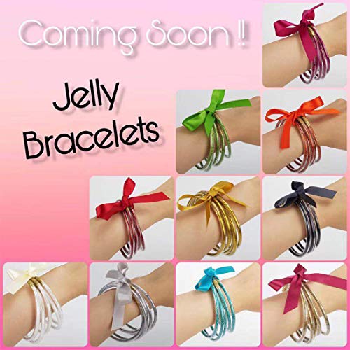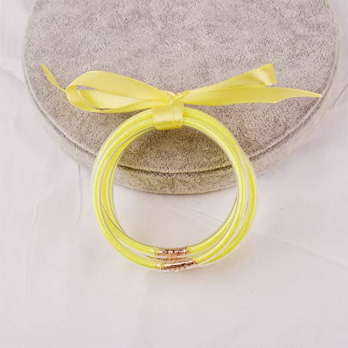 Glitter Jelly Bangle Set Gold Powder Lining Fashion Jewelry Lightweight Cute Bracelets for Women (Bright Yellow)