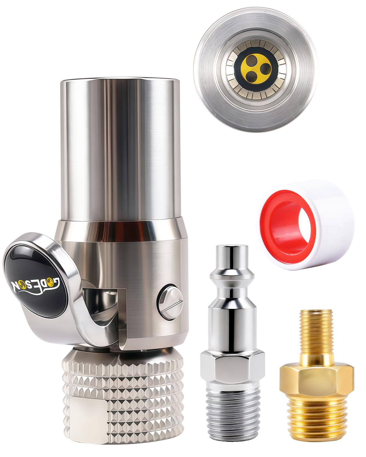 GODESON Locking Air Chuck – 12 Jaws Lock on Schrader Valve, 1/4″ F-NPT Clip on Tire Chuck with 1/4″ M-NPT to 8V1 Adapter and Quick Plug, Compatible with Air Pump, Air Compressor – Open Flow