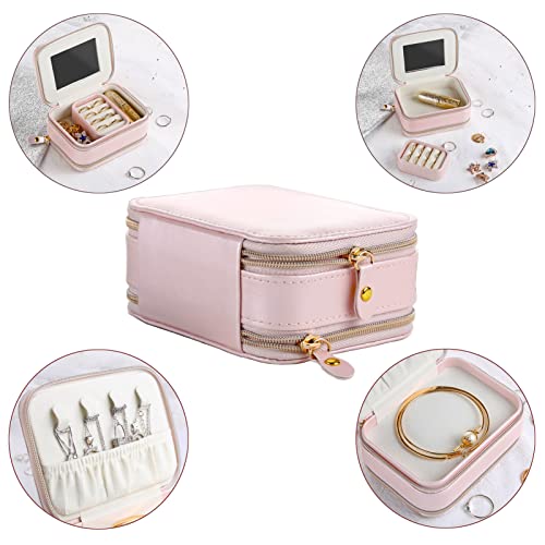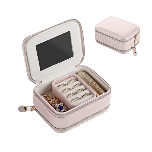 goldwheat Travel Jewelry Box PU Leather Small Travel Jewelry Organizer Portable Jewelry Case for Ring, Earring, Necklace (Pink)