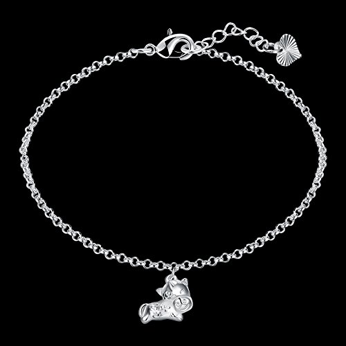Greendou Fashion Jewelry Chinese Zodiac Pendant Bracelet 925 Sterling Silver Plated Twelve Species Animals Pendant Adjustable Bracelets (Horse)
