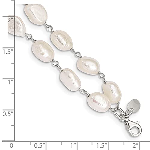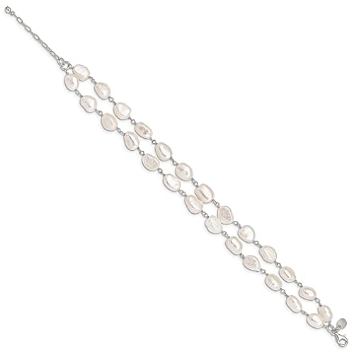 Indulge in elegance with our 925 Sterling Silver 2 Strand White Baroque Freshwater Cultured Pearl Bracelet. This stunning piece features two strands of lustrous pearls on an 8.5-inch chain, making it the perfect accessory for any occasion. Treat yourself or surprise a special woman in your life with this fine jewelry gift that is sure to impress.