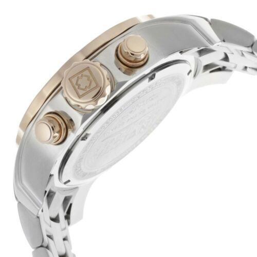 Invicta 80037 Pro Diver chronograph men’s dive watch features a 48mm wide and 17mm thick solid stainless steel case with a scalloped edged unidirectional rotating black accented rose gold tone bezel and textured push-pull crown with function pushers. Invicta 80037 is powered by an accurate Swiss Parts ISA 8172/220 quartz chronograph movement. This stylish watch also features a shiny silver tone dial with white accents rose gold tone luminous skeleton hands and dot hour markers along with the chronograph and day-date display functions, scratch resistant flame fusion crystal and water resistant to 200 meters. Invicta 80037 is equipped with a 26mm wide solid stainless steel bracelet with a fold over safety lock clasp. Invicta 80037 men’s Pro Diver chronograph silver dial stainless steel dive watch is brand new and comes in an original Invicta gift box and is backed by a 3 years limited warranty.