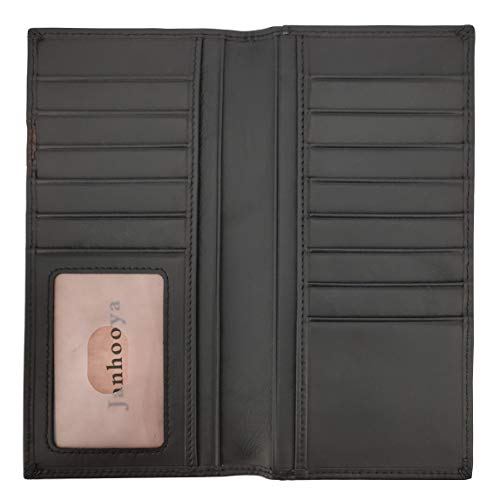 Janhooya Western Wallet for Men RFID Leather Long Bifold Cowboy Wallet Valentines Birthday Gifts Texas Star Black