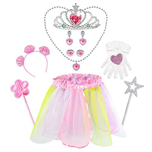 Jeowoqao Girls Dress Up Costume Set, Fairy and Mermaid Role Play Dress-up Trunk with Accessories 25pcs Little Girls Pretend Play Costume for Kids Age from 2-5
