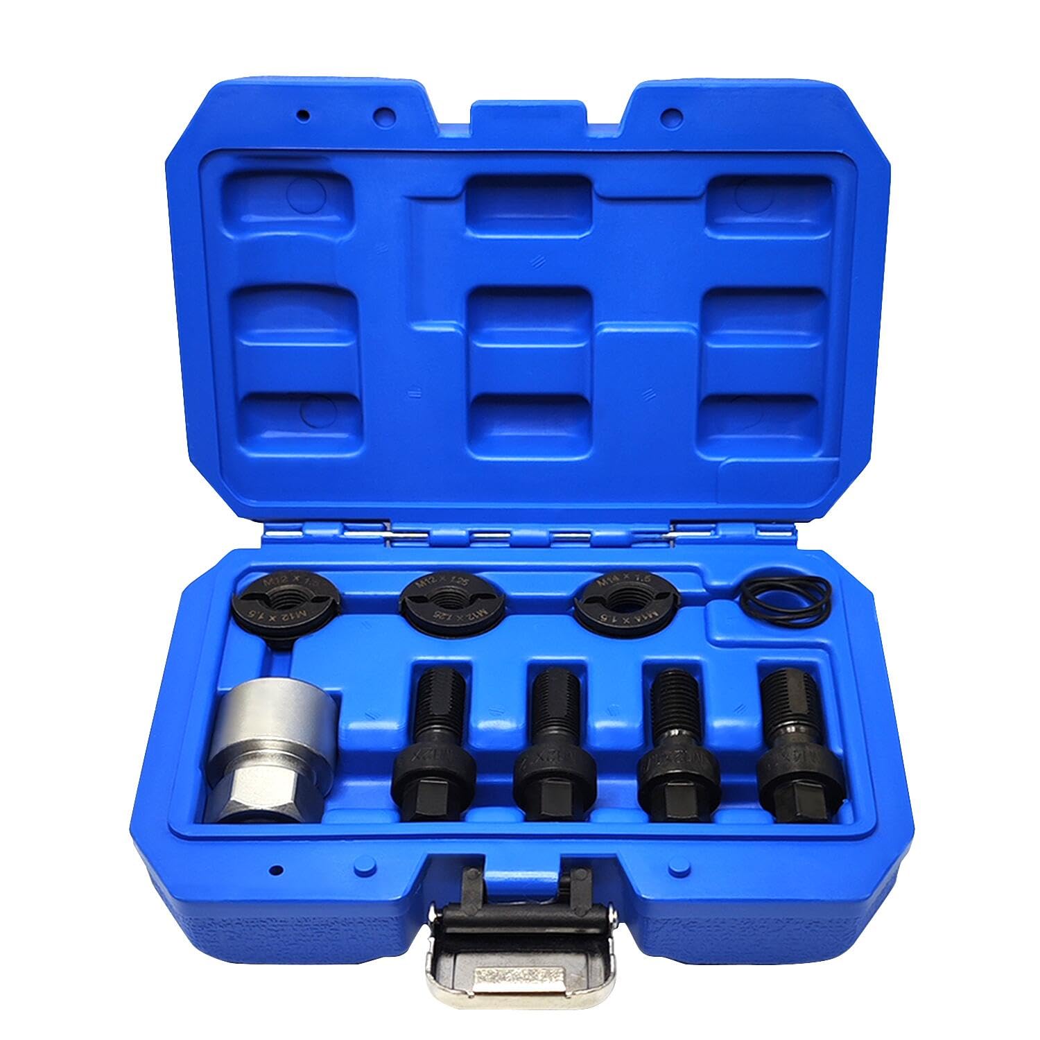 This kit includes four of the most common wheel thread sizes: M12x1.25 for PSA, M12x1.5 for Mercedes Benz and BMW, M12x1.75 for Volvo, M14x1.5 for VAG models,