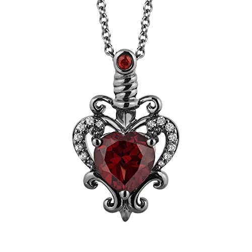 Jewelili Enchanted Disney Fine Jewelry Black Rhodium over Sterling Silver Evil Queen Dagger Pendant with 1/15 CTTW Diamonds and Red Garnet