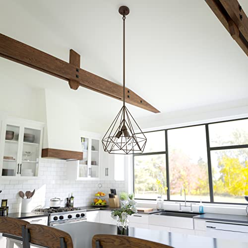 Vintage copper meets geometric glam: metallic dark vintage copper finish lends a traditional look to this geometric glam pendant. a gem-like geometric open shade gives this pendant a contemporary spin, filling your room with a bright atmospheric glow that’s perfect for any luxe dining room, entryway, or living room.