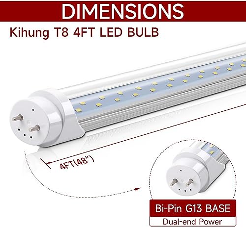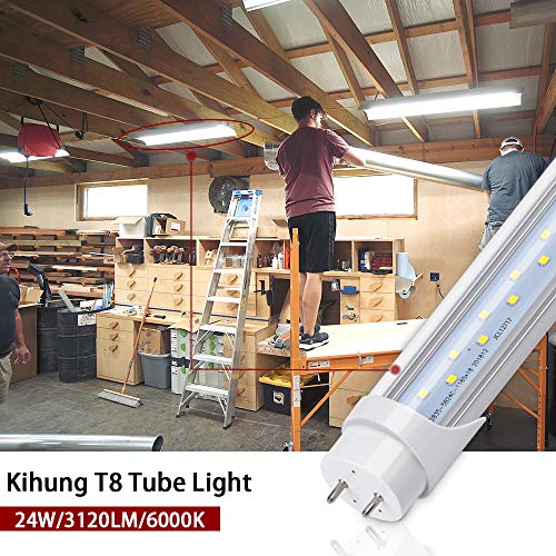 Kihung (12 Packs T8 Led Bulbs 4 Foot, Type B Light Bulbs, 24W 3120LM 6000K, Daylight White Fluorescent Light Bulbs 48 Inch, Ballast Bypass, T8 T10 T12 4ft Led Replacement for Fluorescent Tubes