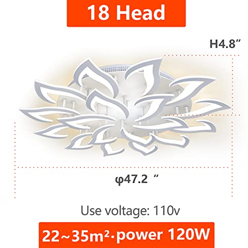 [Fashion design]: Modern 18 petals shape close to the ceiling lamp. Specification: L47.2″”(120cm) x W47.2″”(120cm)x H4.8″”(12cm), voltage: 110V, LED light source, energy saving up to 80%, applicable area 22-35㎡, suitable for Living room, dining room, bedroom, reading room, kitchen, dining room, cafe.