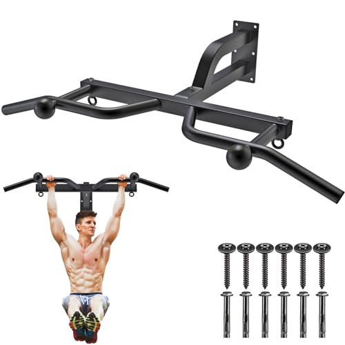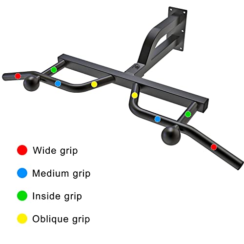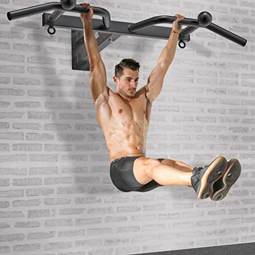 Kipika Heavy Duty Wall Mounted Pull Up Bar, 24″ Wall to Bar Spacing, Multifunctional Chin Up Bar, Ball Finger Grip Training, Body Workout Home Gym System, Resistance Bands Training