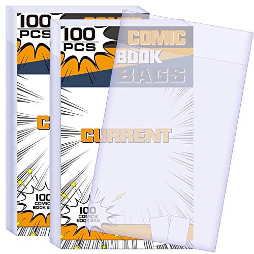 KKU 200 Count Current Comic Book Bags, Clear Comic Bags 7.2 X 10.5 inch, Acid-Free Comic Book Sleeves for Comic Book Storage.