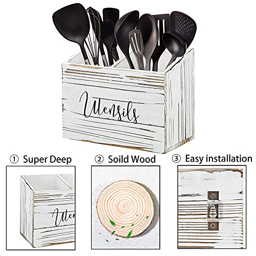 Kitchen Utensil Holder with 2 Compartments, Farmhouse Kitchen Decor Utensil Holder, Rustic Flatware Silverware Utensil Caddy,Kitchen Countertop Organizer and Storage for Silverware Fork Spoon Spatula