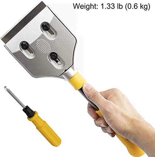 Double-edged blade, 2.5mm ultra thick, built for long lasting. Powerful for remove stubborn stain. Comfort non-slip PVC grip. The end of the scraper can be use as a hammer
