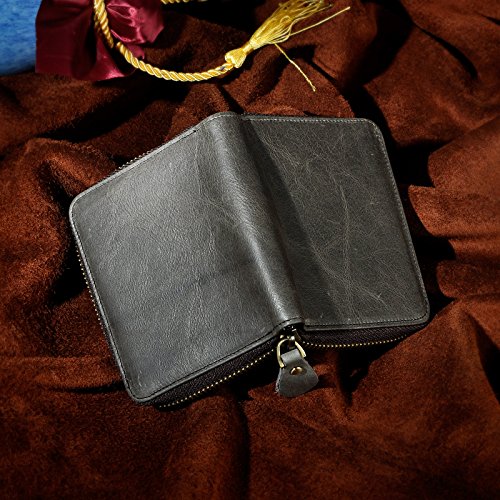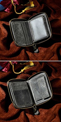 Structure: This is genuine leather for men with zipper around closure as well as a snap coin case, it helps to keep you cash, cars and coins in safe place.