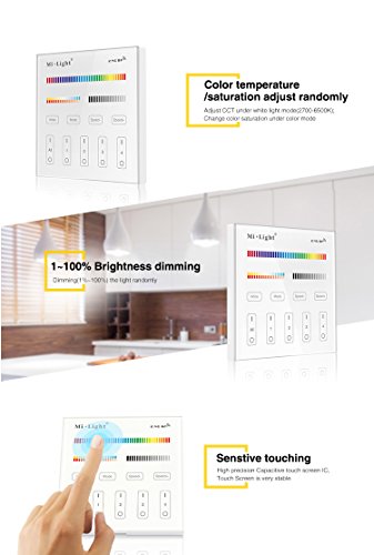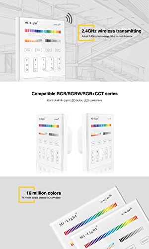 1) Only work with all Mi.Light RGB+CCT series the NEWEST version led lights,LED bulb 12W(ASIN B074PTC165),4W GU10(ASIN B06XT4BLHD),GU5.3(ASIN B075JX1JM1),4-zone LED strip controller(ASIN B071RT7W5H)..***This panel must be installed with 86*86mm junction box(Not included).***