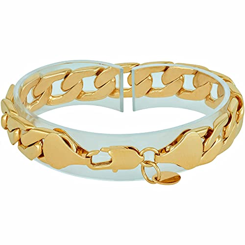 LIFETIME JEWELRY 12mm Flat Cuban Link Chain Bracelet for Men & Women 24k Gold Plated