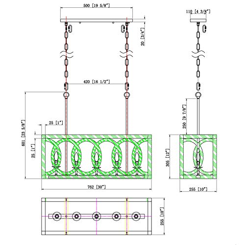 Adjustable Height island lights fixture –Lamp Body Size: L 30”x W10”x H23.7″, the canopy size: L19.69”x W 4.33”x H 0.79”, Chain/Cord Length: 6 feet, Wood Kitchen Island Chandelier light have full details instructions sheets, use simple KD(knocked down) packing. You will easily install the light, save your time and be happy to enjoy your new decoration.