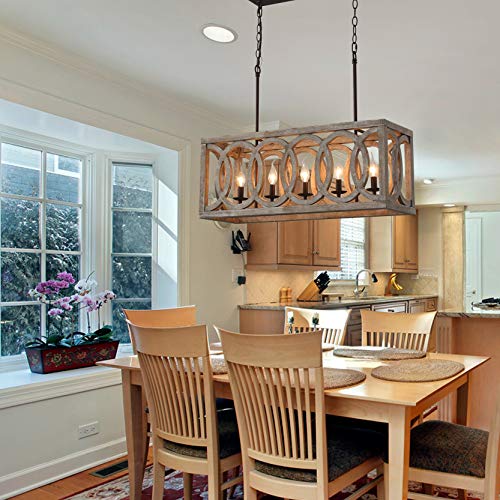 Rectangular Wood Chandelier– This pendant lights are made from superior quality, extra-durable materials, a combination of rustic meal and Real Wood frame, Rust Brown finish that guaranteed to withstand the test of time,The Handicrafts vintage farmhouse hanging chandelier design can highlight the perfect lighting effect.
