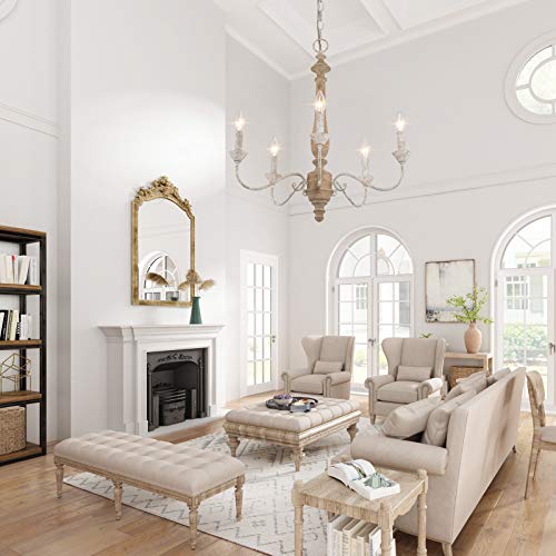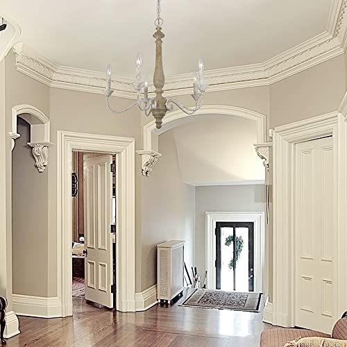 ELEGANT FARMHOSUE CHANDELIERS: White distressed wood finish makes the French Country chandelier a timeless feeling of old times.