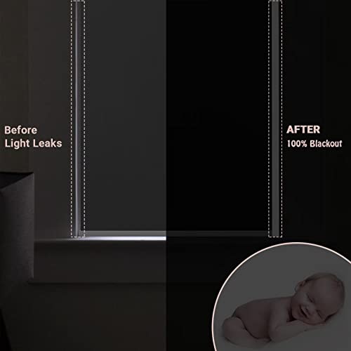 💗【DO YOUR BLINDS OR SHADES LEAK SOME LIGHT INTO YOUR HOME? 】This often occurs due to light gaps that form when a set of blinds or shades doesn’t fit the sides of the window it’s attached to properly. And all window treatment must need to reduce some width to avoid fabric rubbing against the wall when blackout shade is raised or lowered, so light blocker is essential if you want 100% blackout effect.