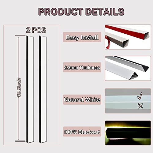 LOHOU PVC Light Blockers Along The Sides of Blackout Blinds for Window Shades and Blinds – 100% Blackout Block Light Great for Bedroom Nursery, Light Blocking Strips (White, 58.5″, 2pcs)
