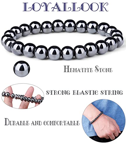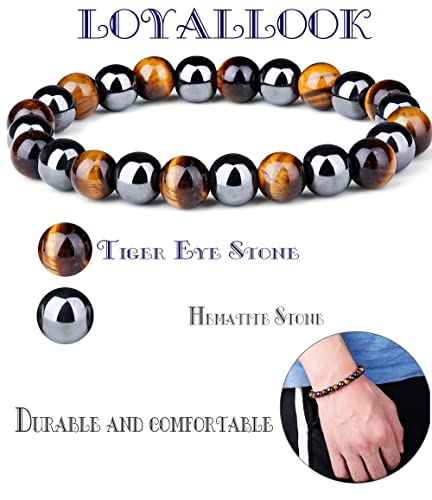 LOYALLOOK 3Pcs Men Women Reiki Healing Bracelet Energy Natural Tiger Eye Stone Hematite Therapy Beads Bracelet Elastic Rope