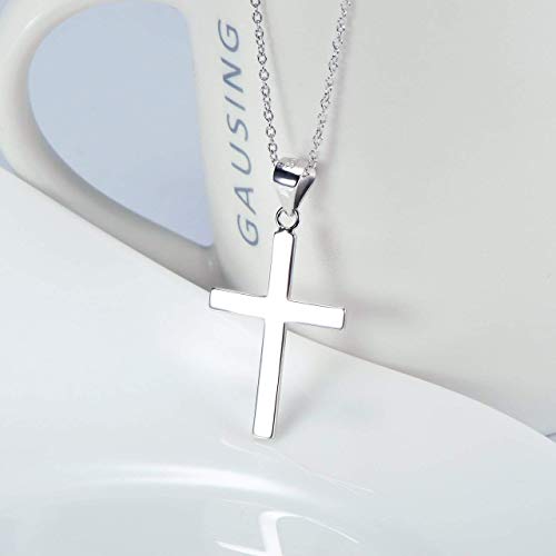 LUHE Small Cross Necklace Sterling Silver White Gold Plated Father Daughter Necklace for Men Women